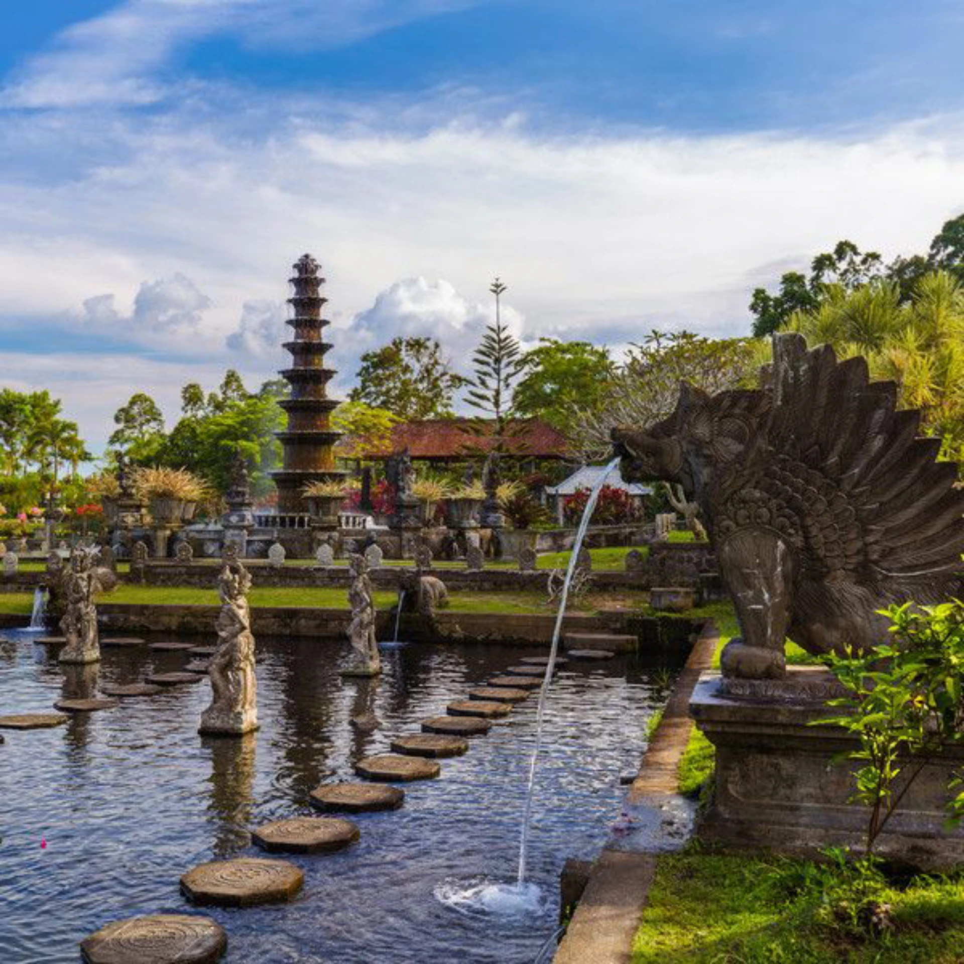 Visit Tirta Gangga Water Palace with its beautiful gardens and water features